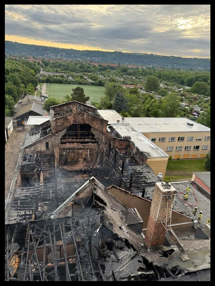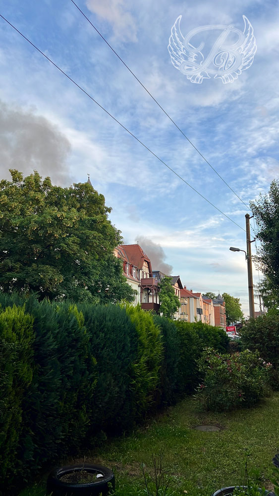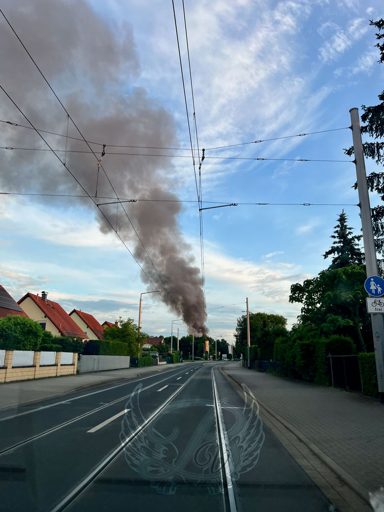 Wir sind ja nicht neugierig – wir wollten nur wissen was los ist. 😉 Also sind wir in meine Knutschkugel gestiegen und losgefahren. Während der Fahrt haben wir noch gerätselt wo es brennt. Dass es letzten Endes die ehemalige Staatsoperette Leuben getroffen hat, war für mich ein Schock.